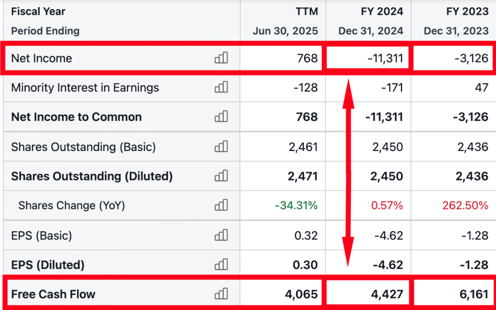 WBD беше на счетоводна загуба, т.е. чистата печалба беше отрицателна и това събаряше акцията. Но ние като инвеститори в стойност погледнахме в cash flow statement-a и видяхме, че като се прибавят обратно непаричните разходи като depreciation & amortization, всъщност компанията разполага с пари, има free cash flow.