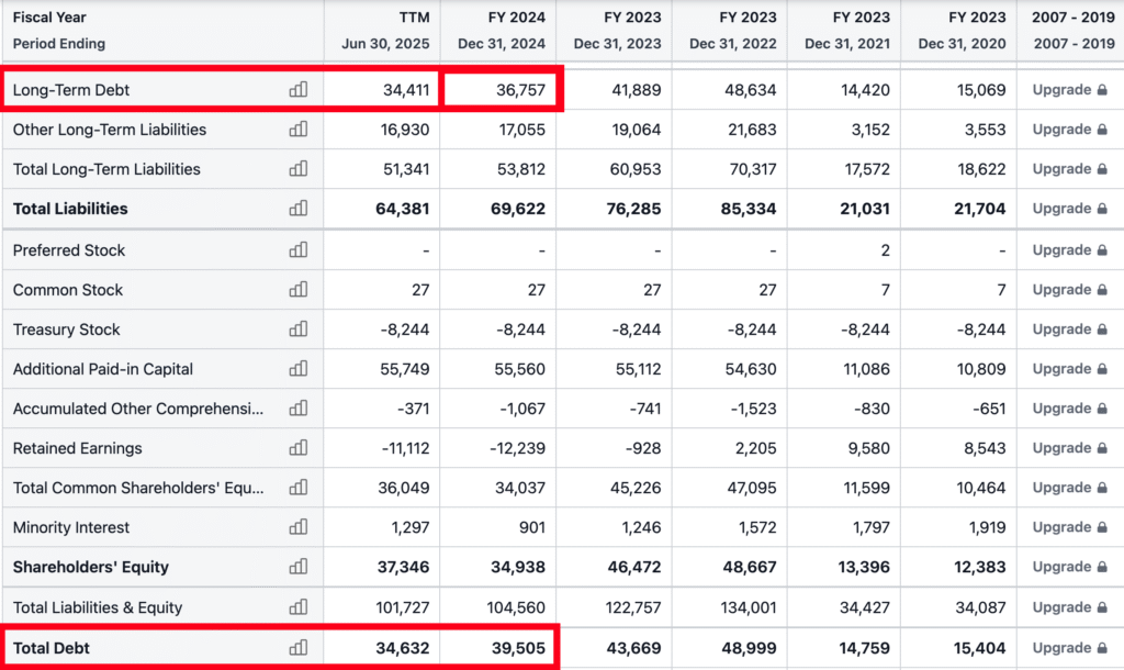 Дългът на компанията хич не беше малък и поставихме една въпросителна, голяма въпросителна, какво би следвало да се случи оттук нататък, как ще излиза от този дълг фирмата във времето напред – близо $40 милиарда дълг… трудна работа при $3-4 милиарда free cash flow да го плащаш и да го изплатиш, нали?