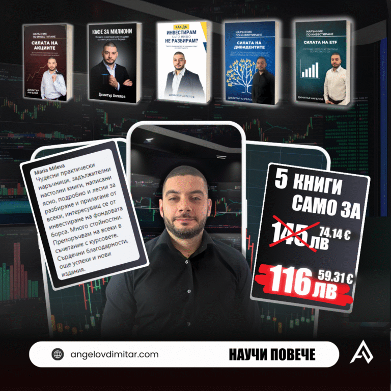 В книгата ми „СИЛАТА НА ДИВИДЕНТИТЕ“ доста детайлно показвам с примери какво реално можем да очакваме от този тип компании и как да инвестираме в тях, за да си построим машина за пасивни доходи, която да ни прави пари. Книгата знаете, че идва и с калкулатор и видео курс, в който ви показвам как да смятате справедлива цена на дивидентна компания. Може да си я вземете от този линк: https://angelovdimitar.com/silata-na-dividentite/