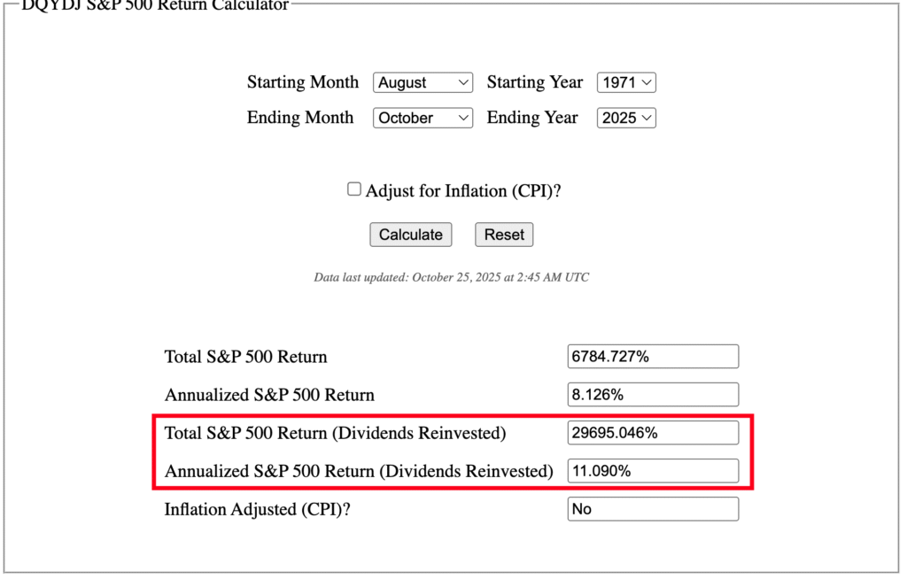Ако вземем периода от 1971 година, когато Америка е фалирала на дълга си, спирайки златния стандарт, пазарът (S&P 500) е върнал близо 30 000% за този 54 годишен период. това прави по 11% на година.