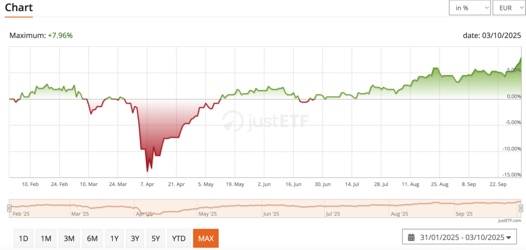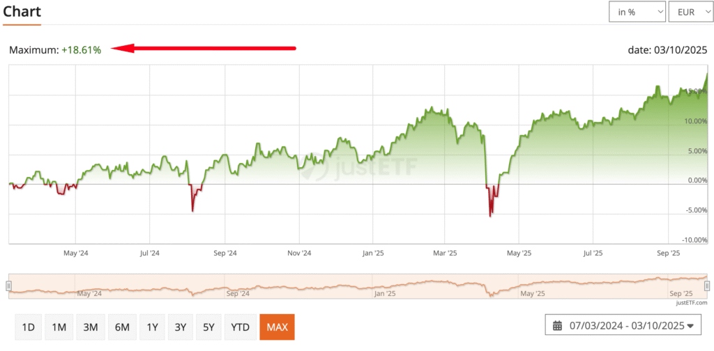 Този ETF е върнал 18.61% от март 2024-та досега, което е малко повече от 1 година. Дивидентът се акумулира в цената, има отскоро и дистрибутиращ вариант за този ETF, може да го погледнете на justetf.com. Все още обаче няма данни за дивидента, трябва малко повече време да мине явно.