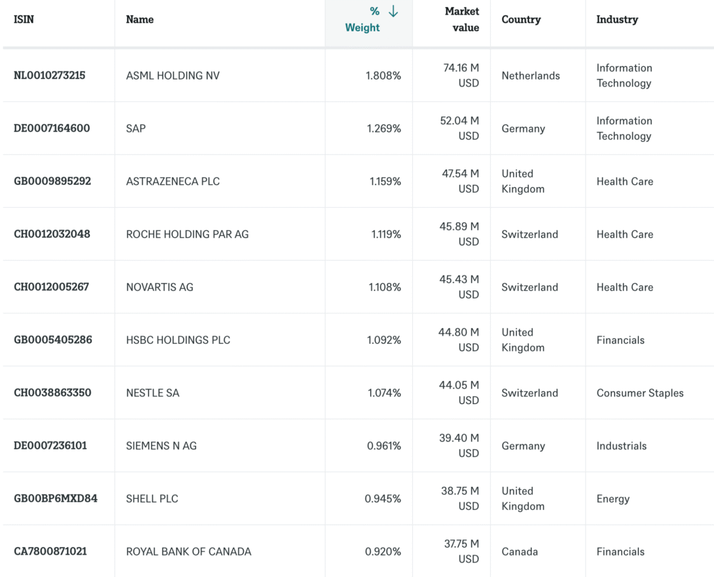 Тъй като този ETF следи същия индекс като първия ETF на xTrackers, който разгледахме, няма да пускам отново същата информация за компаниите и секторите и държавите, тъй като те са еднакви. Ако има някаква разлика, тя би била доста малка.