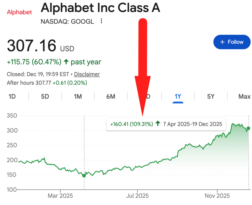 Други компании, които дадоха възможност за инвестиции в стойност бяха GOOGLE, която даде над 100% от дъната през април, както и UNH, която лятото удари дъно и от тогава досега е с близо 40% нагоре без да броим дивидента даже.