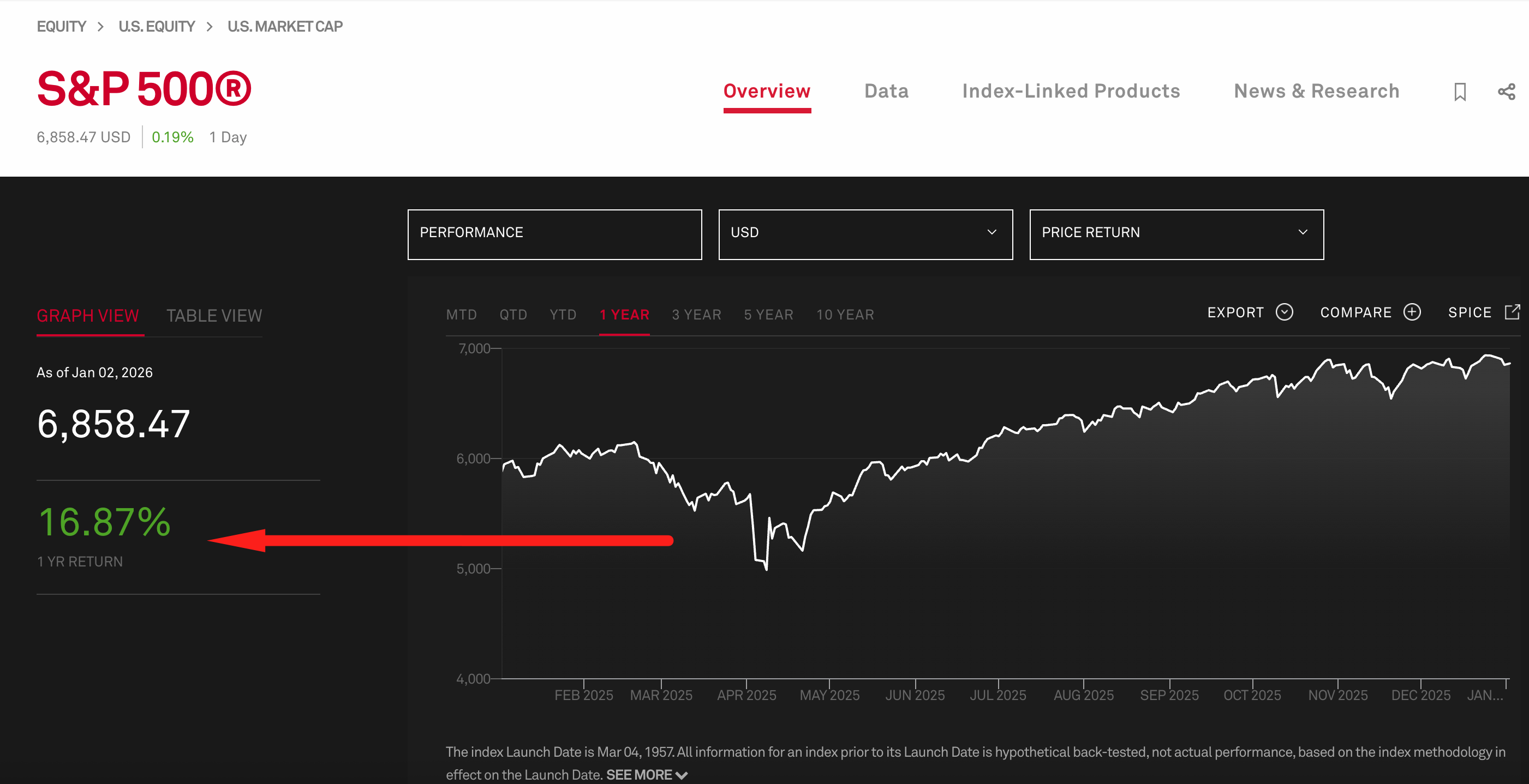 2025-та беше волатилна година, при която обаче, въпреки всички сътресения, опасения, нововъзникнали войни, тарифи, китайски изкуствени интелекти и куп други неща, които да притеснят всеки нов инвеститор, S&P 500 върна близо 17% за годината!