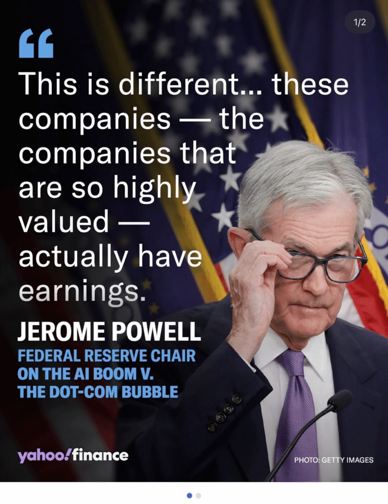 AI е нещо реално, което се случва и както Джером Пауъл каза на последното понижение на лихвите, реално компаниите сега са печеливши и стават още по-печеливши. Няма много общо с дот-ком балона.