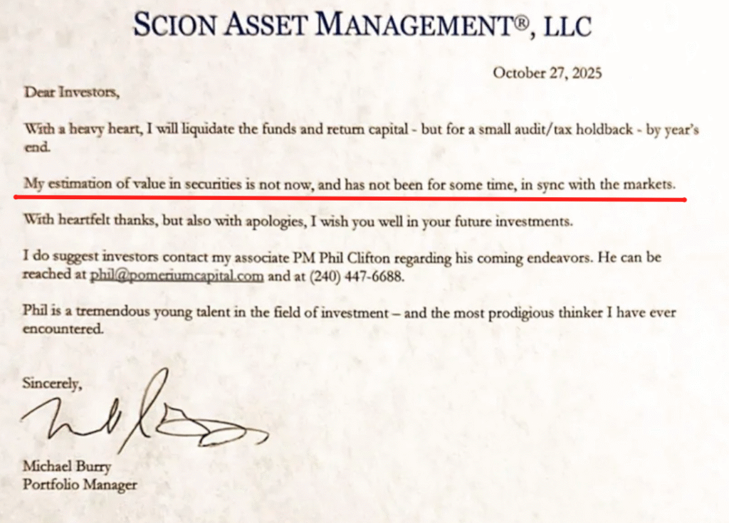 През 2017-та пак нещо голямо се задаваше, през 2019-та индексите били в балон, през 2020-та КОВИД, кризата на кризите, да, направил е пари от някакви short позиции сигурно. В годините след това не се спря да предвижда големите кризи, които така и не дойдоха. Сега последно предвиждаше, че AI е най-големият балон в историята на борсата, даже и Биткойн зачеса, че всичко ще бъде изгубено едва ли не.