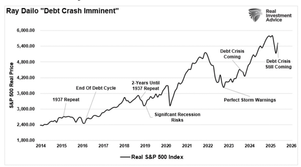 На Рей Далио са му най-любими периодите около голямата депресия в САЩ, все натам го тегли, все това ще се повтаря, даже и срокове дава кога точно ще стане. Добре, че досега не е познавал и добре, че за вбъдеще няма да познае.